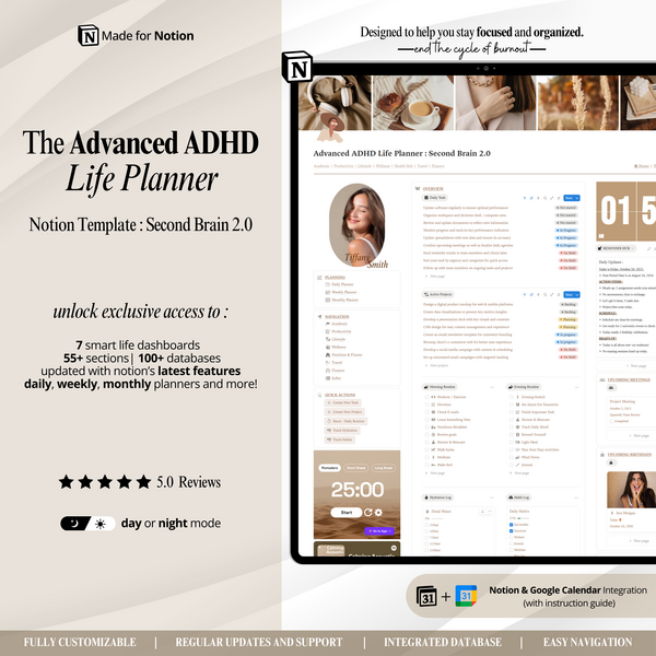 Advanced ADHD Life Planner : Second Brain 2.0 Notion Template