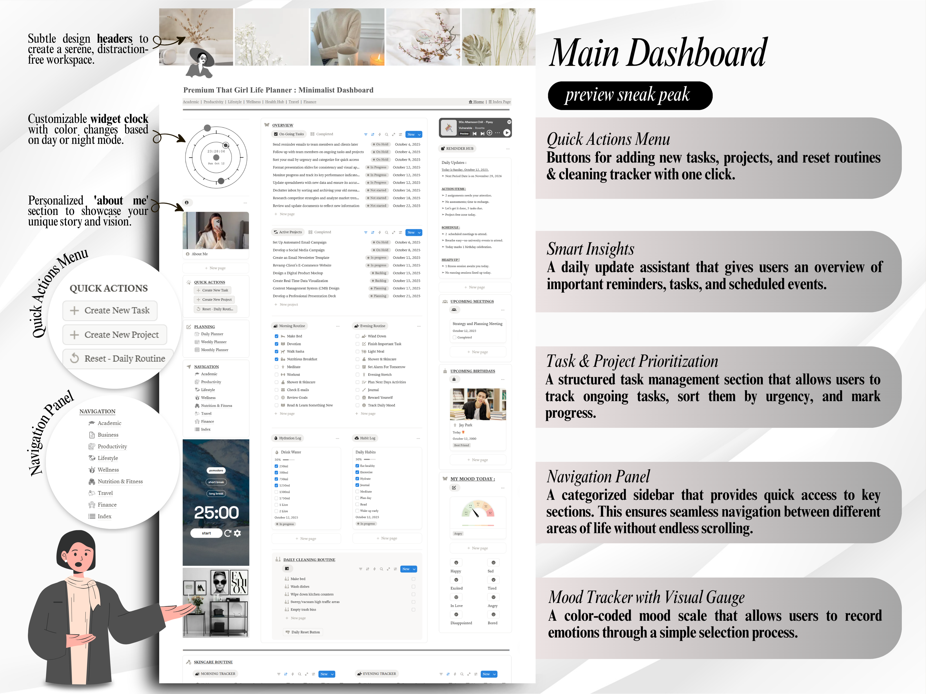 Premium 'That Girl' Life Planner : Minimalist Notion Template for Seamless Organization