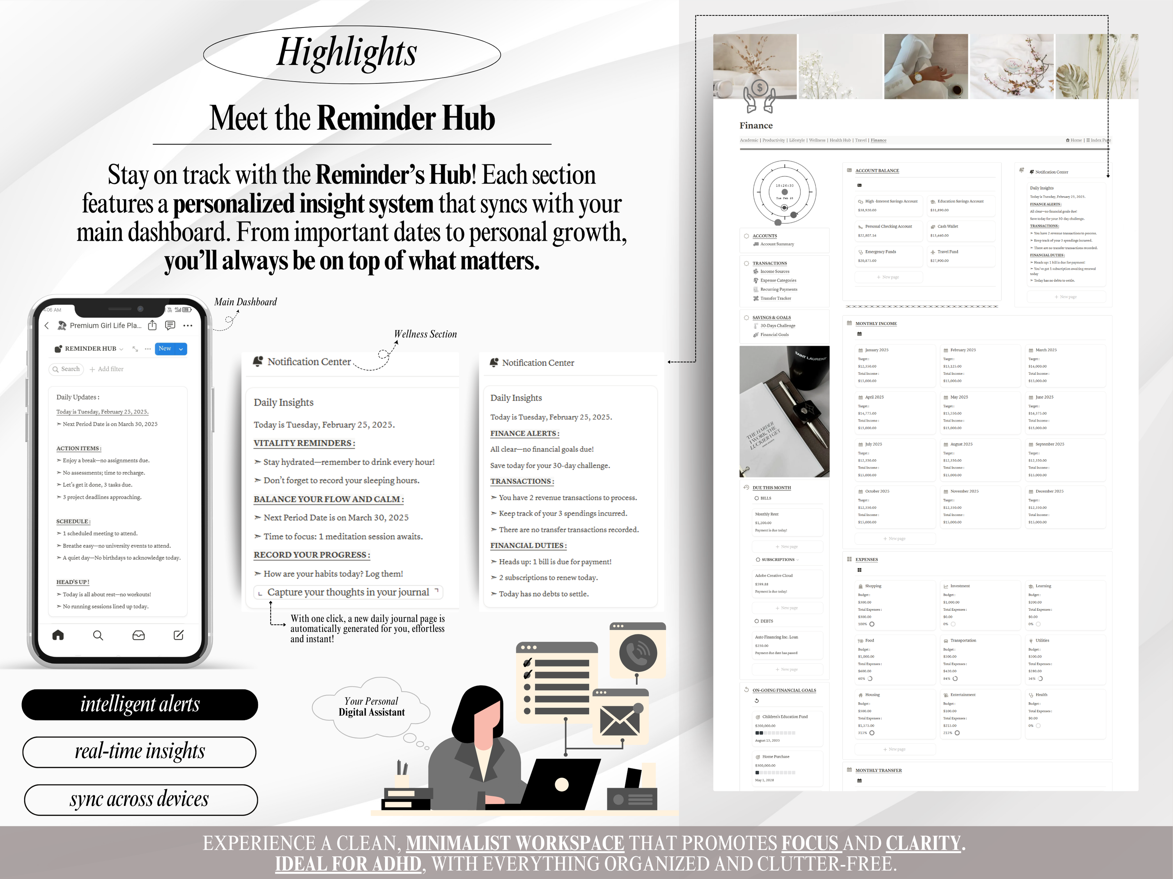 Transform your life today with the Premium 'That Girl' Life Planner : Minimalist Notion Template!